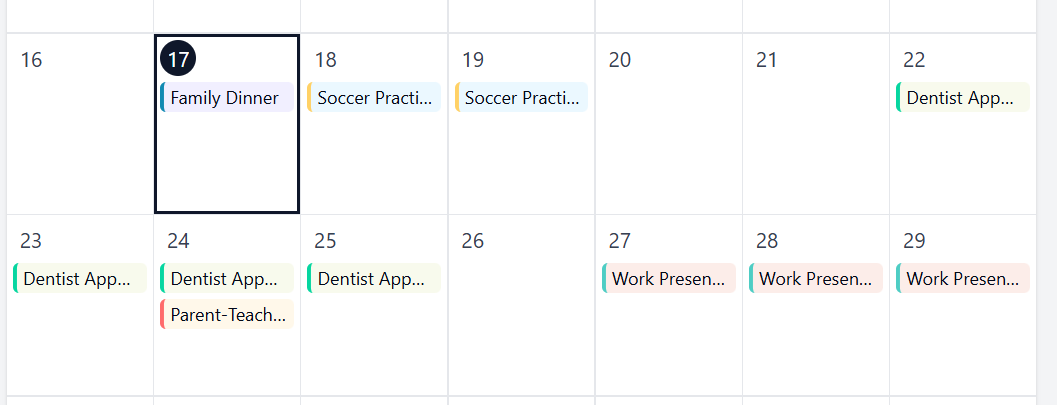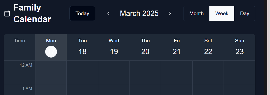 After getting to the first prototype, you can tweak the application by giving clear and explicit instructions either to the design or functionality. All happen using the prompt and automatic code generation in a few minutes. Below is an iteration with a different font, dark mode, and the week start changed to Monday.