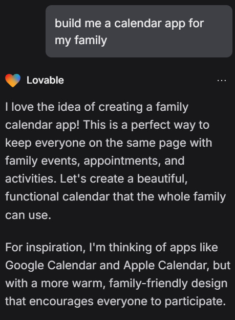 Lovable is an app that uses your prompt as input to create web applications. This category of products is now called Vibe Coding. Wikipedia defines it as: